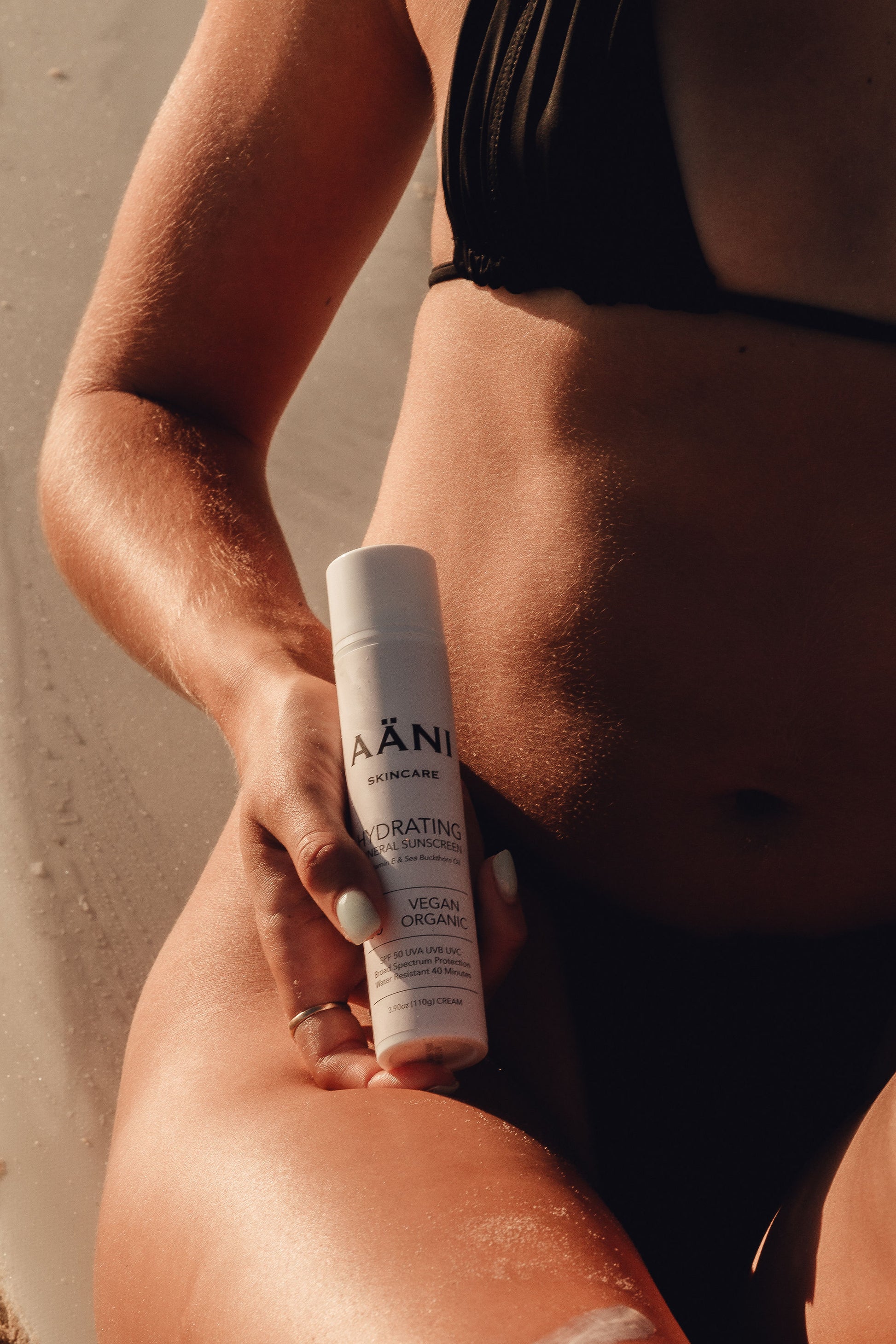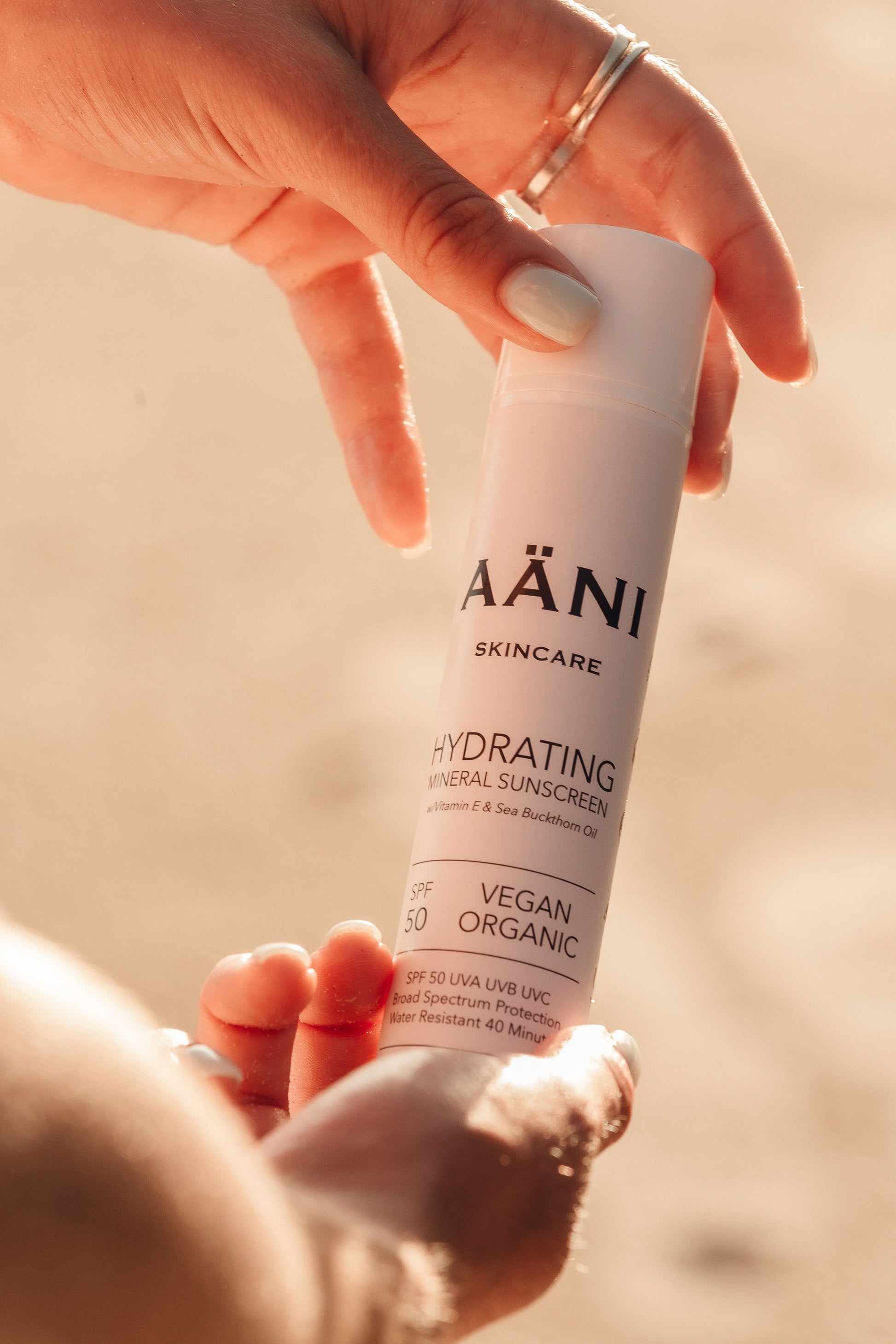 Our daily SPF Hydrating Mineral Sunscreen infused with Vitamin E + Sea Buckthorn oil has a light feel and is easy to
